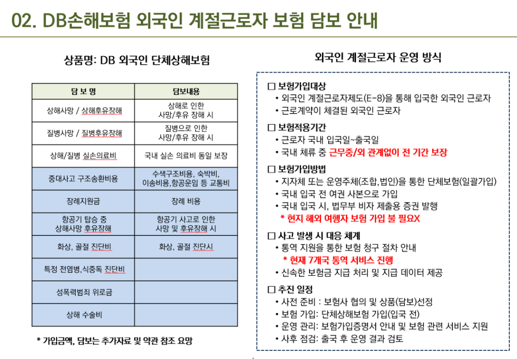 까다로운 가입 심사나 복잡한 서류 제출 없이, 여권 하나로 쉽고 빠르게 가입할 수 있습니다. 작업 중 발생한 사고는 물론 일상생활 중 아픔까지 든든하게 지켜드리는 외국인 근로자 전용 케어 서비스입니다.